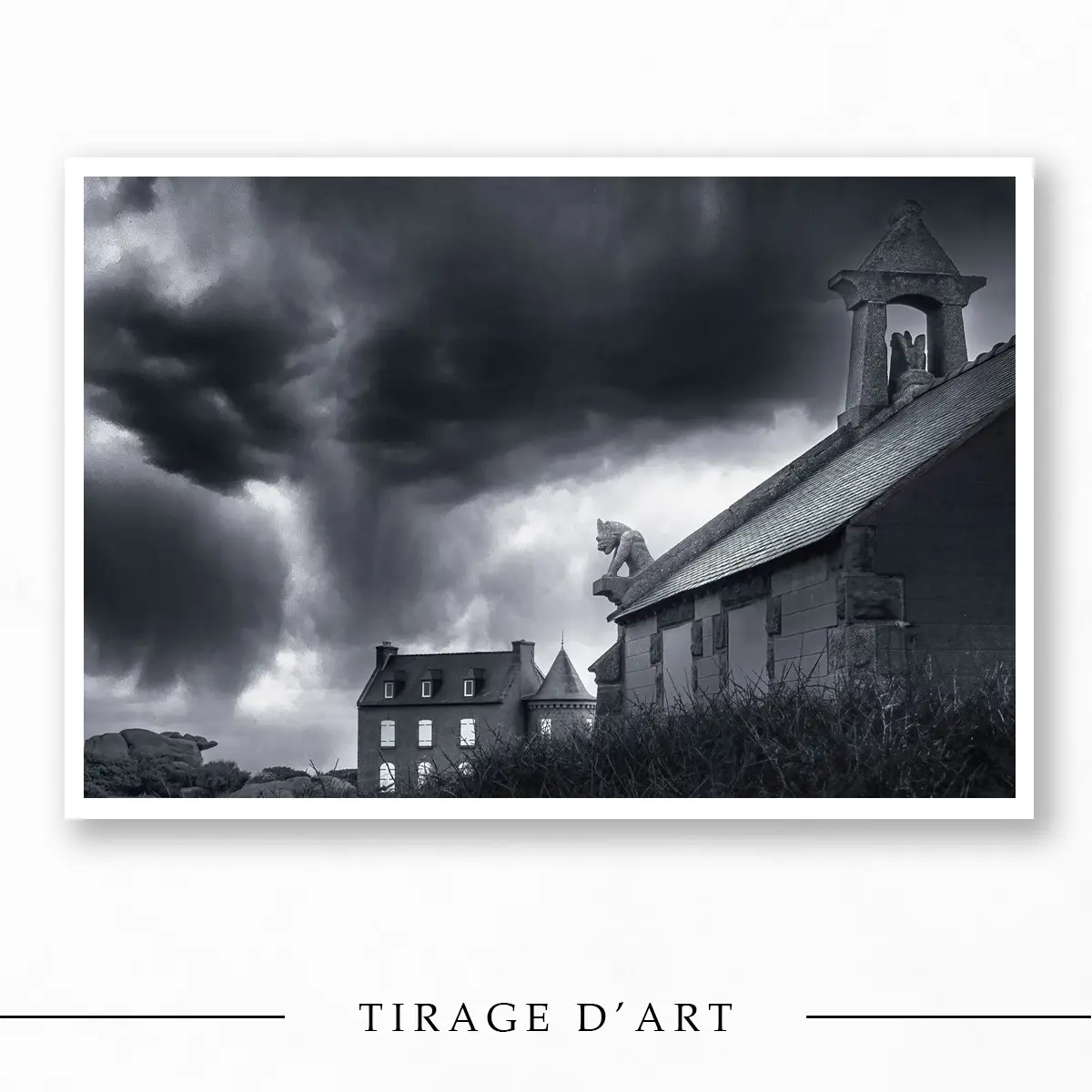 Découvrez l’ambiance si particulière du sentier des douaniers près de Perros-Guirec avec ce tirage en noir et blanc, disponible en édition limitée.